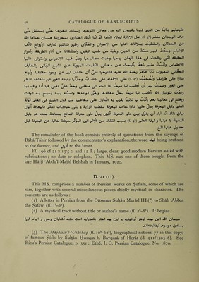 Credit: A descriptive catalogue of the Oriental mss. belonging to the late E. G. Browne / by Edward G. Browne, completed & edited with a memoir of the author and a bibliography of his writings by Reynold A. Nicholson. Source: Wellcome Collection.