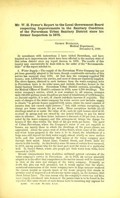 Mr. W. H. Power's report to the local government board respecting improvements in the sanitary condition of the Faversham urban sanitary district since his former inspection in 1875.