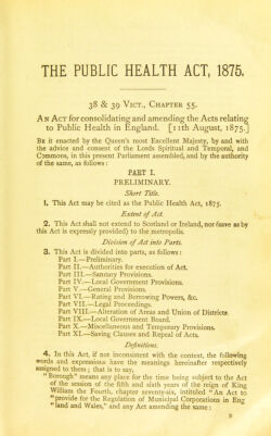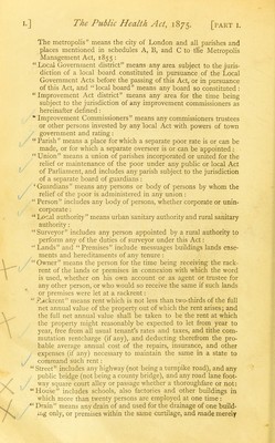 Credit: The Public Health Act, 1875 : (38 & 39 Vict., cap. 55) and other statutes and parts of statutes relating to the public health preceded by a complete index to the same / by Frederic Stratton. Source: Wellcome Collection.