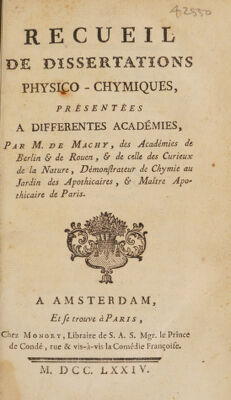 Recueil de dissertations physico-chymiques, présentées à differentes académies / [Jacques Fran̨cois Demachy].