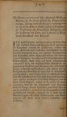Credit: Memorials on both sides, from the year 1687, to the death of K. James II, with divers original papers never before publish'd, useful for such as desire to be fully inform'd in the true state the Revolution and the birth of the Pretender. Source: Wellcome Collection.