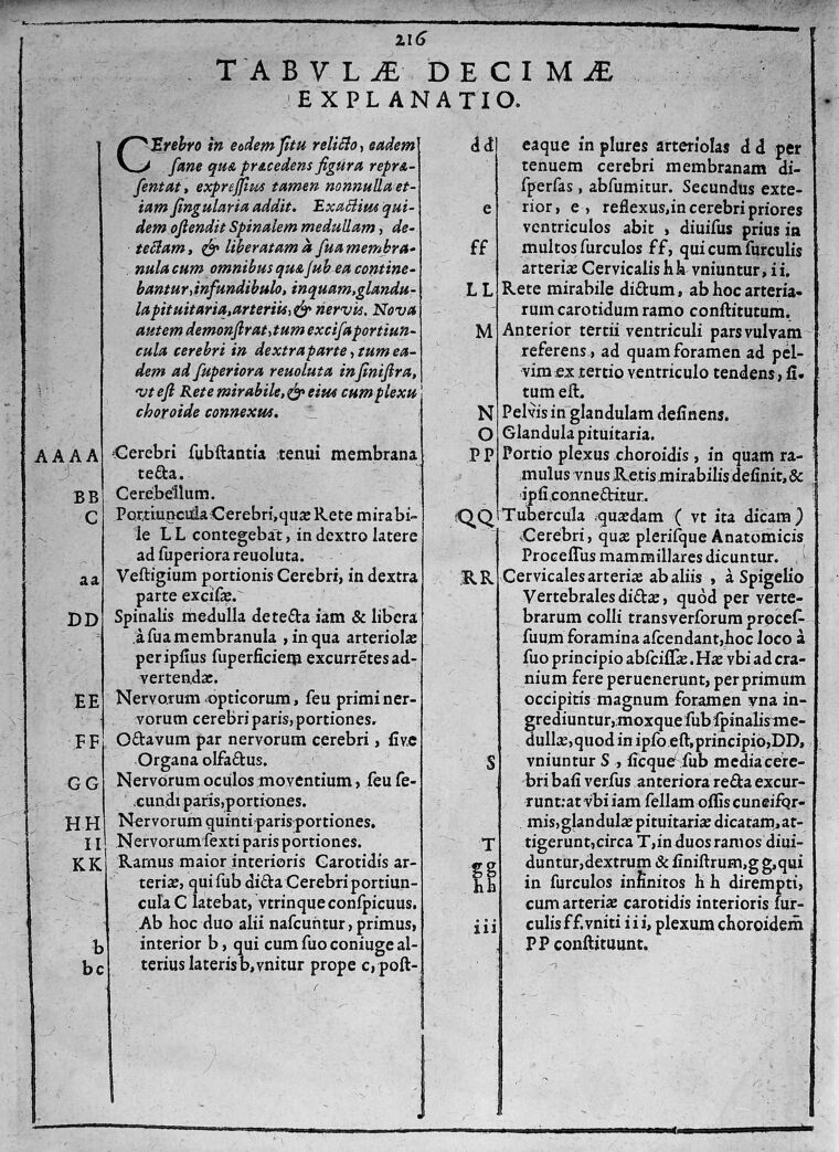 M0016911: Explanation of plate X, from Spiegel: <i>Tabulae anatomicae LXXXIIX</i>, 1632. Public Domain Mark. Source: Wellcome Collection.