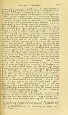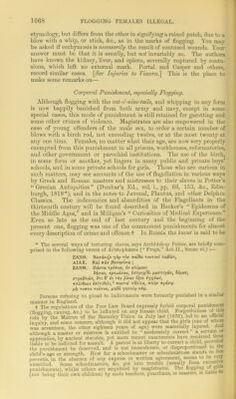 ![“Forty stripes he may give him, and not exceed.” “Of the Jews five times received I forty stripes save one. Thrice was I beaten with rods &c.,” says St. Paul, 2 Corinth, xi., 24-25. The cause of death in these cases was not always the same. Sometimes it was due to shock or fright, inducing fatal syncope; sometimes to exhaustion, inducing fatal conse- quences by oedema of the lungs, or effusion into serous cavities, such as the pericardium, pleurae or ventricles of the brain; in fact, much the same modes of death as in burns. The amount of tissue killed, and the extent of skin not only injured but put out of work, must, as in bums, be taken into consideration. The flogging block used at Newgate is said to “resemble a box with a high back. The lid and one side are opened, and the man steps in, placing his heels in notches cut out of a plank parallel to the bottom, and a few inches above it; his toes go under the plank, and when the lid and side are shut his legs are firmly fixed. He then places his hands in holes, like those in the stocks, made in the back of the machine. Consequently all movement becomes impossible. No intimation is given as to when the punishment is to take place, and a man is therefore kept in a state of ignorance as to both day and hour till some fifteen minutes before the time. The punishment is very severe, though the number of lashes seldom exceeds thirty, for the ‘ cat ’ has a larger handle, and is made of thicker cord than the ‘cat’ used in the army. Besides, the executioners are strong men, and not drum- mer-boys.” Mi-. Gibson, the experienced surgeon of Newgate, has kindly informed us that no untoward accident has occurred from flogging at Newgate. He is careful to examime the pulse before, and from time to time during the punishment. On the other hand, he has never known excitement of the genital organs produced, probably because the punish- ment falls chiefly on the shoulders and upper part of the back. There is usually little difficulty in recognising the marks of a severe flagellation, no matter what the instrument. There are cicatrices, and these often undergo a cheloidal thickening and contraction. A few years ago photographs of the marks produced by the flogging of a run- away slave were sold and exhibited in most of the print-shops. Governor Wall was tried before the Lord Chief Baron, some years ago, for causing the death of a man by excessive punishment, by flagellation. The defence was, that the deceased had destroyed himself, by the immoderate use of spirits, while under treatment in the hospital. The judge laid it down that no man was entitled to place another in so perilous a pre- dicament as to make the preservation of his life depend merely on his own prudence, He further remarked that the long continuance and severity of pain (in flagellation) may be productive of as fatal conse- quences as if instruments or weapons of a destructive kind were used. Some years ago [Lewes Autumn Assizes, 1860] a school-master named Hopley was tried for causing the death of a youth of sixteen (a delicate and somewhat weak-minded lad) by beating him most severely for nearly two hours with a rope and a stick. The skin was little injured, but the muscles exhibited great bruising and laceration, and there were exten- sive ecchymoses. There were marks of blood on the prisoner’s clothing, which he tried to conceal. In general, unless the number of blows be too excessive, some idea of the instrument used may be formed by® bruises or marks. But a broad flat sort of paddle, used by the plan ers in the Southern States, was said to leave hardly any marks.](https://iiif.wellcomecollection.org/image/b21907869_1110.jp2/full/800%2C/0/default.jpg)