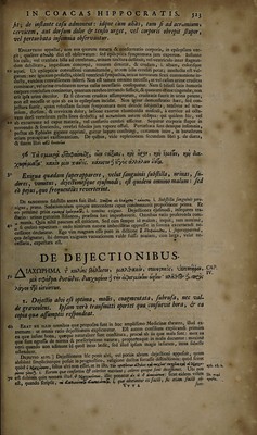 ![Coae. 15. £. xi. lib. 2. g.acut. flb. 2. vrteA iietpui. * sr ps LUDOVICI DURETI COMMENT. tura mitificatae craflefcunt. Hinc falus fperabilis, etfi nondum fida fpes: quoniam r «a-mrwi νπίφκ, >&] r ύίτηοντων πτπασμ&ς. i. eorum qua affumuntur, coCtio · & exeuntium mitificatio una 0- ilenditur. Teretes vermes.] Lumbricos,quorum ortus & maniio eil in tenuibus inteftinis: ibi enim aluntur & manent ubi gignuntur. Nam lumbricorum ή iντικΐχρ» venit ab ονΰίλίχίΐχ excremen¬ ti chylofi, quod nufquam eil nifi in ventriculo & tenuibus mteilinis. Cernitur ea ratio in pueris & infantibus, quibus copia eil lumbricorum, de fupervacaneo chylo, ab eorum nimia . edacitate. Una exire cum excrementis.] Non quidem cibi faecibus: id enim eflet fatietatis: fed cum fpiflatis dejeftioiiibuS quae antea circumfluebant humidae ; tametfi cum faecibus efle pof- 1 o funt. Dum Morbus ad crisin procedit.] Vel cum ittir ad crifin de morbi pepafmo: tum enim major fiducia eil mox affuturae falutis, cum in eadem deje&ione cernitur cibi coftio, & hu¬ moris morbifici mitificatio, cum recreata virtute partium folidarum, quae antea fraftae a mor¬ bo jacebant. Cernitur cibi codtio in excremento chylofo unde gignuntur lumbrici: nam tae¬ niarum quae toto funt ambitu intellinorum; & afearidum, quae in ano catulliunt, alia ratio efl. Gignuntur autem lumbrici, ciim excrementi chylofi putrefeere incipientis, endelechia eil a fpiritu & calore inteilinorum, fefe in eam materiam infinuante. Humoris autem mitificatio five pepafmus apparet in fpiffa & figurata dejeftione quae antea circumfluebat termini expers proprii, ac tantum particeps alieni. Ergo profuerit una lumbricos exire cum excrementis, 2Q dum itur ad crifin. Nam quod objicitur ex Hippocrate; quod homo quidam qui febre cor¬ reptus, liberaliter fe potu & cibo invitavit in cccna; cum ei lumbricis dudia fuiflet alvus die feptimo, tandem undecimo vitam finivit: objedlionis folutio eil, quod in concurfu fignorura omnium funeitorum id aeddit; tum quod eidem dejedtio erat humida & torminofa, non ficut & hic, facilis & figurata de craflitudine parta coquendo. Scire autem licet, quod Aurelianus putavit lumbricis mortuis perniciem fignificari: fed falso, quia vix efl alibi locus vivendi lum¬ bricis, quam in tenuibus inteftinis. At fimulatque in crafla defeenderint, cita mors venit; nifi erethifmo prorumpant: ut annotavit Hippocrates in illa progn«fi. τ* κ«^<Λλ^κ« ςρ&$*· ^9<λ»»ΐί fyeJ» κχχκρρίγνυττϋΐ· Vide comment. ad eam. Sed Dioclis opinio eil; vivis exeuntibus denunciari mortem. Iflerophilus autem fuflinet neutros grave quippiam ominari. Apollonius -0 & Glauco ajunt, initio cruditatem , poil appetentem crifin oflendi. Antiphanes, fine fler- 1 core malos efle defendit. Sed ita llatuendnm. Vermes tum vivi, tum mortui, principio quidem funt mali: nam illinc cruditas; hinc putredo oflenditur. Cum vero itur ad crifin, vi- dlrice natura; fic exeunt ut ponitur in hac prognafi. 4 Ei/ οξίσι το άφξω^ζς νμα, ‘ mm. mwv $ ngtj το ϊχλώχον. fO Spumans dejeBio in acutis undiquaque biliofa j mala: mala item 4° praalba. Duo audivimus dejettionum genera qux fida fpe nos confolantur in morbis quorum illa funt ShtpMvipfr»; vel quae adjiciunt fecuritati, quando fperabilis efl vitae falus de fignis bonis quse cujufque morbi funt propria : ut in pleuritide, verbi caufa, de anacatharfi, qualem jam faepe fupra oilendimus. Nunc audienda funt multa malorum genera quae apparent in caeteris alvi deje&ionibus, quae nos ad normam earum quae adduftae funt bonae, examinabimus. Ac primum de iis dicendum quae pravis coloribus atque fitu, in vitio funt. Earum primae oc¬ currunt biliofa:, admodum faturatae viridi aut flavo colore; & omnis coloris expertes, prae- albae. Quae omnes cur ita fint, & quorfum appareant; fic aggredior ad docendum. Spumans dejectio.] i. Bullis minimis obfita quae affulgunt in fuperficie, tum a flatu , tum a calore contra naturam eximio. Ac biliofa quidem fyncera, fpumat ardore vifceris unde ma¬ nat, qualem accepimus illam efle quam ciet melicratum «h&w in biliofis. De qua fic pofi- tum eil a praeceptore. Tas μβ/ίτοι Ο^χωςήματκ , fyij μ£»ον 5 χ,Χ4ξ2 καταν^ςίως χολ»5tct. μχ»ον 9τςμχ' π μα»,ον ξ νΧ«ςΐ<& ayi. i. Sane fpumantes dejectiones, ac magis quam decet colore faturo biliofas, magifque calidas; fyncerum melicratum ciet potius quam aquofum. In acutis.] Quorum eil bilis propria generatio, ficut iidem a bile nafcuntur: de quibus haec feripta funt a Galeno. In acutis febribus biliofa gigni fyncera per corpus, nihil efi mirum. Mala.] Ut caufa & figno. Signo quidem invalefeentis morbi, & ad exitium conipirantis, 60 aut certe non facile concefluri naturae, nec medico. Hic enim duo cernuntur quae funt gra- viflima; bilis eximie faturata, & fpuma: quae funt ejufmodi, ut ex ardore nata, non prius ipfum extingui pofle teilentur ; quam partium vivacitatem atque nativum calorem extinxerit: nifi afliduo neoterifmo intus & foris vifcera recreentur. Atque ut brevi compleftar incom¬ moda bilis hic pofitae; fufficiet illud quod jam attigimus ex Hippocrate, & quod idem bili de- feriptae appofuit. Hujufmodi autem dejeCtio fyncerce bilis atque fpumantis, alia quoque habet mala infignia. Nam hypochondriorum ardorem non extinguit, fed magis accendit: tum anxitudinem , ar¬ tuumque jaCtationem infert: preeterea intefiini & fedis ulcerifica efi. Mala item pr^alba.] Quae non eil ejufmodi de aflumptorum colore, ut pultis ex farina & la6te, tum lafilis ipfius: qualem accepimus du6lam fuifle cuidam Apollonio ex ufu laftis ca- prini. Sed quse pnealba eil, vacuitate omnis biliofas tin&urae: quod fer£ iitericis accidit; ' f non-](https://iiif.wellcomecollection.org/image/b30459631_0546.jp2/full/800%2C/0/default.jpg)