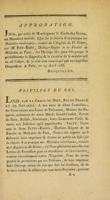 Credit: Essai sur la théorie et la pratique des maladies vénériennes ... / Traduit de l'anglais, augmenté de notes ... par M. Petit-Radel. Source: Wellcome Collection.