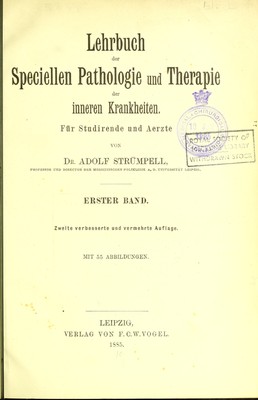 Lehrbuch der speciellen Pathologie und Therapie der inneren Krankheiten : für Studirende und Aerzte / von Adolf Strümpell.