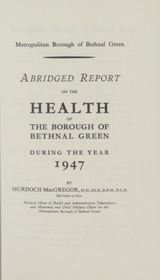 [Report of the Medical Officer of Health for Bethnal Green Borough].