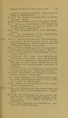 Der gegenwärtige Standpunkt in der Pathologie und Therapie des Ulcus serpens corneae / von Fritz Cohn.