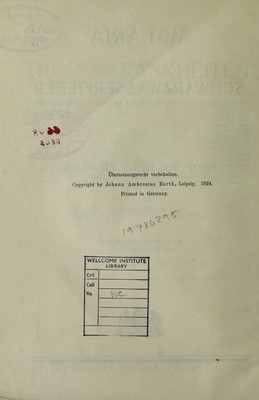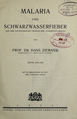Malaria und Schwarzwasserfieber (aus dem Pathologischen Museum der Universität Berlin) / von Hans Ziemann.