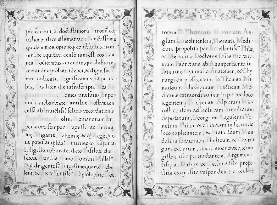 Credit: M0016106EB: Medical diploma from the University of Padua awarded to Thomas Heron, 1602. Source: Wellcome Collection.