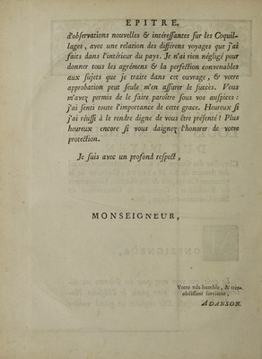 Histoire naturelle du Sénégal. Coquillages. Avec la relation abrégée d'un voyage fait en ce pays, pendant les années 1749, 50, 51, 52 & 53 / [Michel Adanson].
