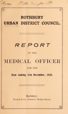 Credit: [Report 1920] / Medical Officer of Health, Rothbury U.D.C. Source: Wellcome Collection.
