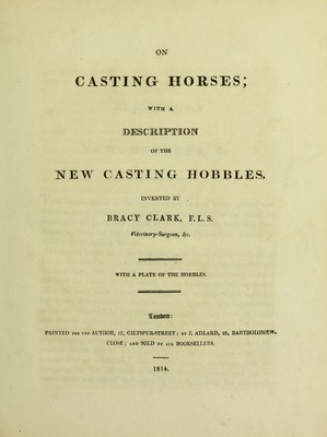 On casting horses ; with a description of the new casting hobbles, invented by Bracy Clark / [Bracy Clark].