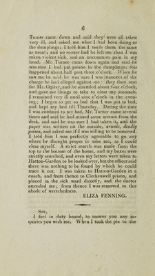 Credit: Eliza Fenning's own narrative of circumstances which occurred in the family of Mr. Turner, from the time of her going into their service until her apprehension ... To which are added, the affidavits, with several important letters and remarks / [Elizabeth Fenning]. Source: Wellcome Collection.