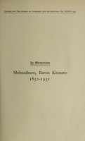 In memoriam. Shibasaburō, Baron Kitasato, 1852-1931 / [William Bulloch]. In copyright. Source: Wellcome Collection.
