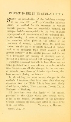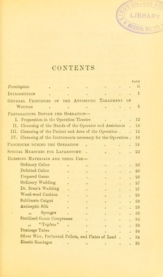 Credit: Introduction to the antiseptic treatment of wounds : according to the method in use at Professor Billroth's clinic, Vienna / translated, with the author's permission, from the German of Victor R.V. Hacker ; by C.R. Kilkelly. Source: Wellcome Collection.