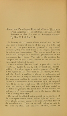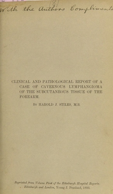 Clinical and pathological report of a case of cavernous lymphangioma of the subcutaneous tissue of the forearm : (under the care of Professor Chiene) / by Harold J. Stiles.