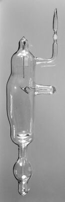 M0015829: Two Geissler discharge tubes for experiments on the effects of cathode rays / M0015830: Early x-ray tube with convex cathode, anti-cathode and anode, c.1897