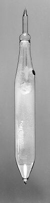 Credit: M0015829: Two Geissler discharge tubes for experiments on the effects of cathode rays / M0015830: Early x-ray tube with convex cathode, anti-cathode and anode, c.1897. Source: Wellcome Collection.