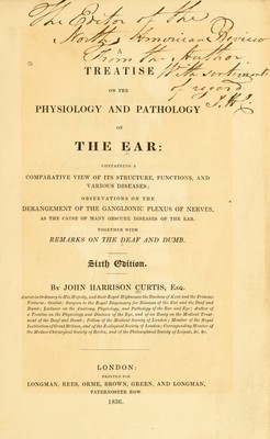 A treatise on the physiology and pathology of the ear : containing a comparative view of its structure, functions, and various diseases : observations on the derangement of the ganglionic plexus of nerves, as the cause of many obscure diseases of the ear : together with remarks on the deaf and dumb / by John Harrison Curtis.