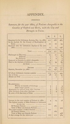 Superintendent's report for 1861 : with statistical tables / Littlemore Asylum.