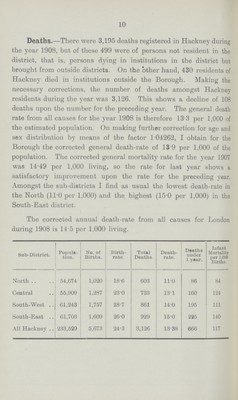 Report on the sanitary condition of the Hackney District for the year 1908.