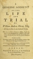 view A genuine account of the life and trial of William Andrew Horne, of Butterly-Hall, in the County of Derby; who was convicted at Nottingham Assizes, August 10, 1759, for the murder of a child in the year 1724, and executed there on the 11th of December, 1759, to which is prefixed a particular detail of all the circumstances tending to the discovery of this long-concealed murder / [William Andrew Horne].