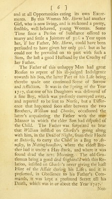 A genuine account of the life and trial of William Andrew Horne, of Butterly-Hall, in the County of Derby; who was convicted at Nottingham Assizes, August 10, 1759, for the murder of a child in the year 1724, and executed there on the 11th of December, 1759, to which is prefixed a particular detail of all the circumstances tending to the discovery of this long-concealed murder / [William Andrew Horne].