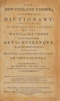 The New England farmer; or, Georgical dictionary: containing a compendious account of the ways and methods in which the most important art of husbandry. In all its various branches, is, or may be, practised to the greatest advantage in this country / By Samuel Deane, A.M. Fellow of the American Academy of Arts and Sciences. Public Domain Mark. Source: Wellcome Collection.