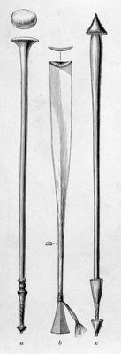 Credit: M0019306: Illustration of wooden clubs from New Ireland and Duke of York Island, Papua New Guinea. Source: Wellcome Collection.