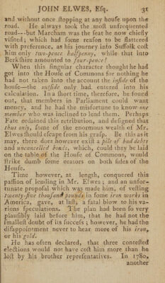The remarkable life of John Elwes Esq., member in three successive Parliaments for Berkshire, with singular anecdotes, etc. Supposed to be the greatest instance of penury, that ever existed / [Edward Topham].