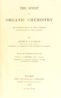 The spirit of organic chemistry : an introduction to the current literature of the subject / by Arthur Lachman; with an introduction by Paul C. Freer. In copyright. Source: Wellcome Collection.