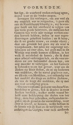 Nieuwe verhandeling over de ziektens der oogen. Waar in gehandelt word van het samenstel en gebruik der oogen, de oorzaaken van derzelver ziektens, de toevallen, hulpmiddelen, en heelkundige operatien, die meest dienstig zyn tot derzelver geneezing. Met de nieuwe ontdekkingen over het samenstel van het oog, welke het onmiddelyk werktuig van 't gezigt aantoonen ... Naar den laatsten druk uit het Fransch vertaalt / [Saint-Yves (Charles)].