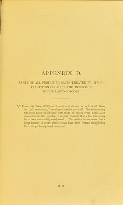 Credit: Essay on growths in the larynx : with reports, and an analysis of one hundred consecutive cases treated by the author, and a tabular statement of all published cases treated by other practitioners since the invention of the laryngoscope / by Morell Mackenzie, M.D., London, M.R.C.P. Source: Wellcome Collection.
