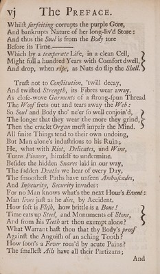 Credit: Health, a poem. Shewing how to procure, preserve, and restore it. To which is annex'd The Doctor's decade / By Edward Baynard, M. D. Source: Wellcome Collection.