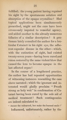 Credit: Cataract; its nature, symptoms & cure. With reference especially to the restoration of sight, by a peculiarly mild and successful operation, applicable to every variety of the disease, in its early as well as its late stages, and at any period of life. Illustrated with cases ... / [John Stevenson]. Source: Wellcome Collection.