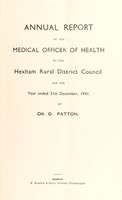 [Report 1941] / Medical Officer of Health, Hexham R.D.C. Attribution 4.0 International (CC BY 4.0). Source: Wellcome Collection.