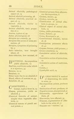 Credit: On the animal alkaloids : the ptomaïnes, leucomaïnes, and extractives in their pathological relations ... / by Sir William Aitken. Source: Wellcome Collection.