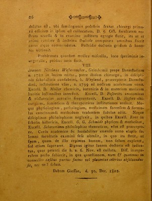Ordinis medici ... decanus ... aliquot candidatos summis in medicina honoribus condecoratos commendat atque professorum qui medicinam in Academia Giessensi docuerunt conspectum praemittit. [Cum vitis candidatorum] / [Ernst Ludwig Wilhelm Nebel].