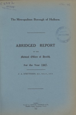 - Holborn (London, England). Metropolitan Borough.