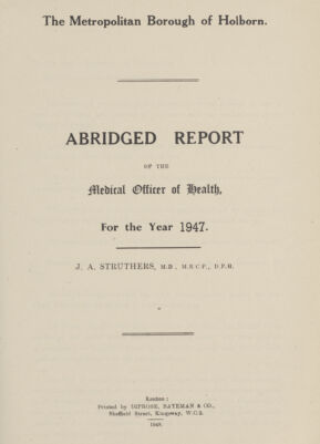 [Report of the Medical Officer of Health for Holborn Borough].
