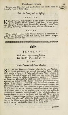 Credit: Sylva, or a discourse of forest-trees, and the propagation of timber in His Majesty's dominions / as it was delivered in the Royal society on the 15th of October, 1662, upon occasion of certain quæries propounded to that illustrious assembly, by the honourable and principal officers and commissioner of the Navy. In two books. Together with an historical account of the sacredness and use of standing groves. Terra, a philosophical essay of earth ... to which is annex'd Pomona; or an appendix concerning fruit-trees ... also Kalendarium hortense; or, the gardener's almanack ... by John Evelyn. Source: Wellcome Collection.