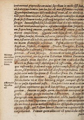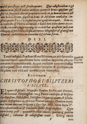 Credit: Gregor. HorstI D. Dissertatio de natura amoris : in illustris Academiae Giessenae panegyrica festivitate publice proposita, cum tres eruditione & virtute macti viri-juvenes Artis Medicae Laureâ Doctorali solemniter IV. non. April. anno MDCXI. ab eodem coronarentur, additis resolutionibus quaestionum dnn. candidatorum, de cura furoris amatorii, de philtris, atque de pulsu amantium. Source: Wellcome Collection.