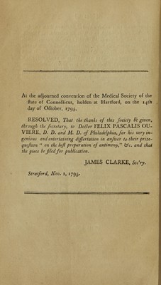 Credit: Medico-chymical dissertations on the causes of the epidemic called yellow fever : and on the best antimonial preparations for the use of medicine / by a physician, practitioner in Philadelphia. Source: Wellcome Collection.