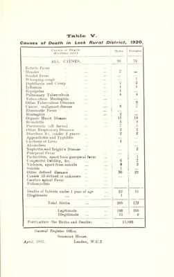 Credit: [Report 1920] / Medical Officer of Health, Leek R.D.C. Source: Wellcome Collection.