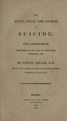 Credit: The guilt, folly and sources of suicide: two discourses / preached in the city of New York, February, 1805. Source: Wellcome Collection.