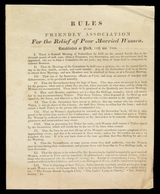 Credit: Rules for the Friendly Association for the Relief of Poor Married Women, Established at York, 11th mo. 1809 (1809). Source: Wellcome Collection.