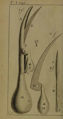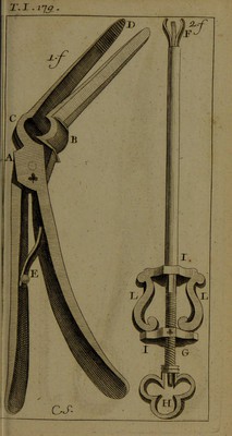 Credit: Nouveau traité des instrumens de chirurgie les plus utiles; et de plusieurs nouvelles machines propres pour les maladies des os ... ouvrage très-nécessaire aux chirurgiens, & très-utile pour les couteliers ...** / Par René Jacques Croissant de Garengeot. Source: Wellcome Collection.