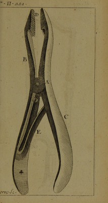 Credit: Nouveau traité des instrumens de chirurgie les plus utiles; et de plusieurs nouvelles machines propres pour les maladies des os ... ouvrage très-nécessaire aux chirurgiens, & très-utile pour les couteliers ...** / Par René Jacques Croissant de Garengeot. Source: Wellcome Collection.
