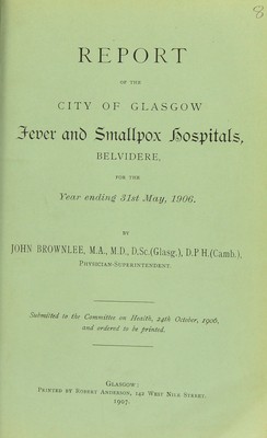 Report of the City of Glasgow Fever and Smallpox Hospitals, Belvidere, for the year ending 31st May, 1906 / by John Brownlee.